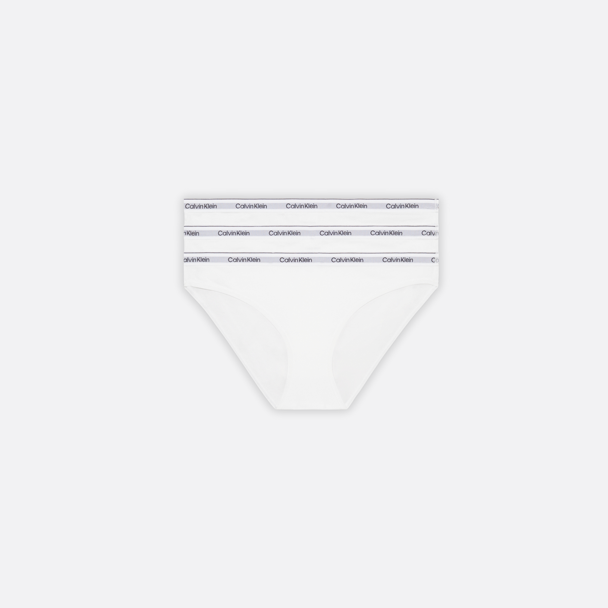 Pack of 3 bikini briefs in stretch cotton blend with Calvin Klein logo elastic waistband.