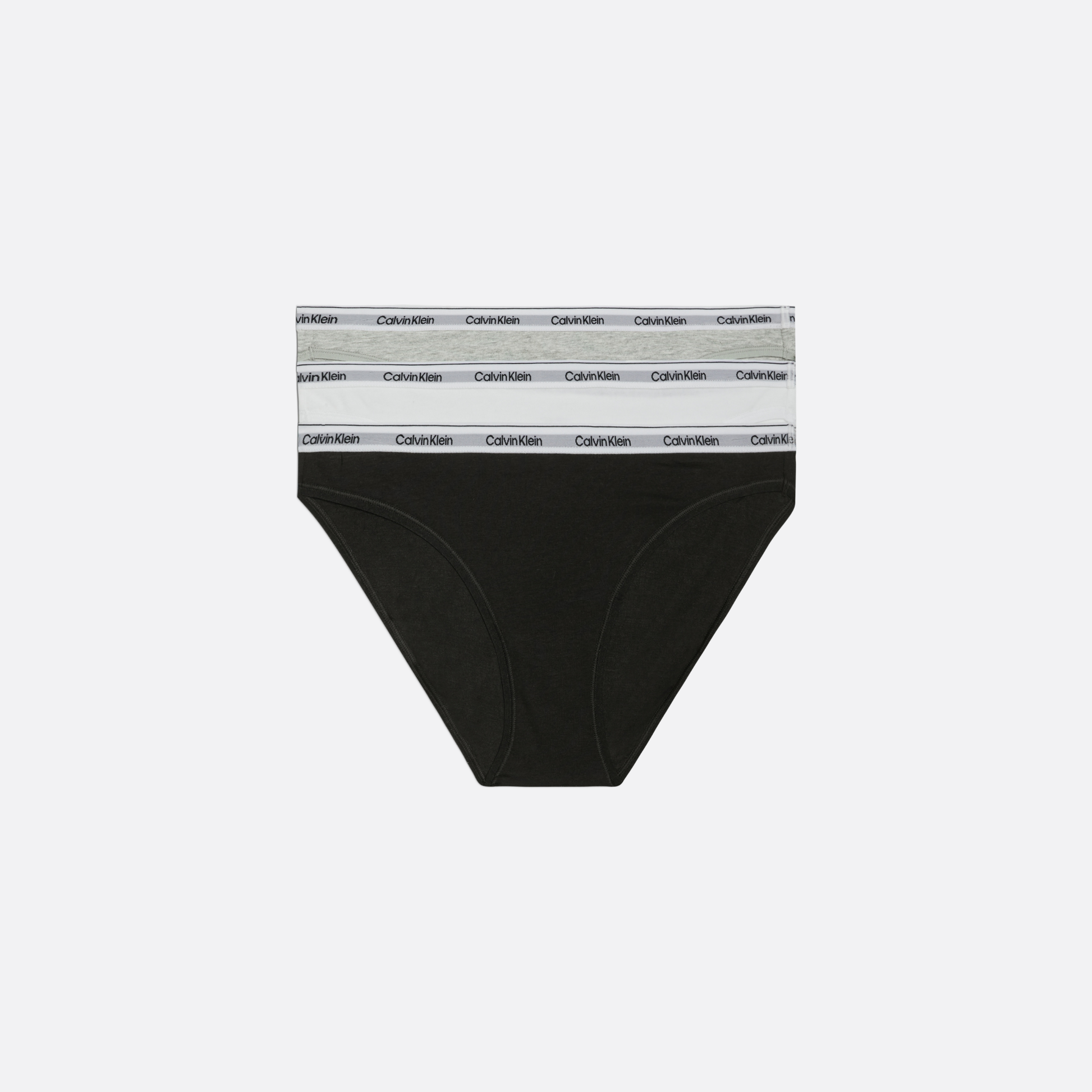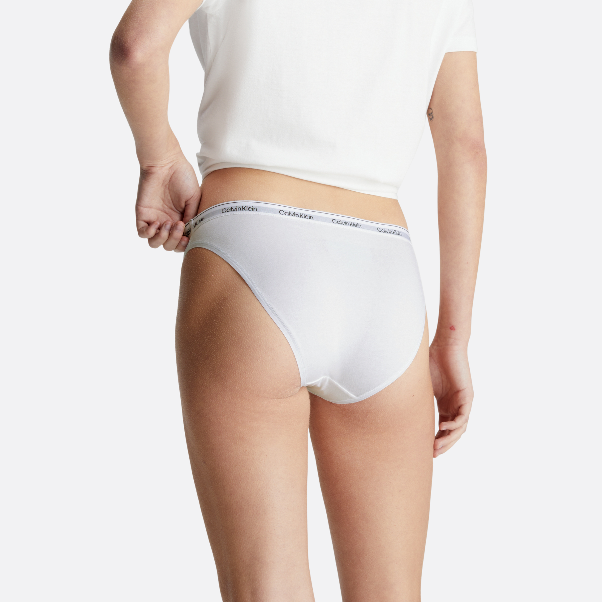 Pack of 3 bikini briefs in stretch cotton blend with Calvin Klein logo elastic waistband.