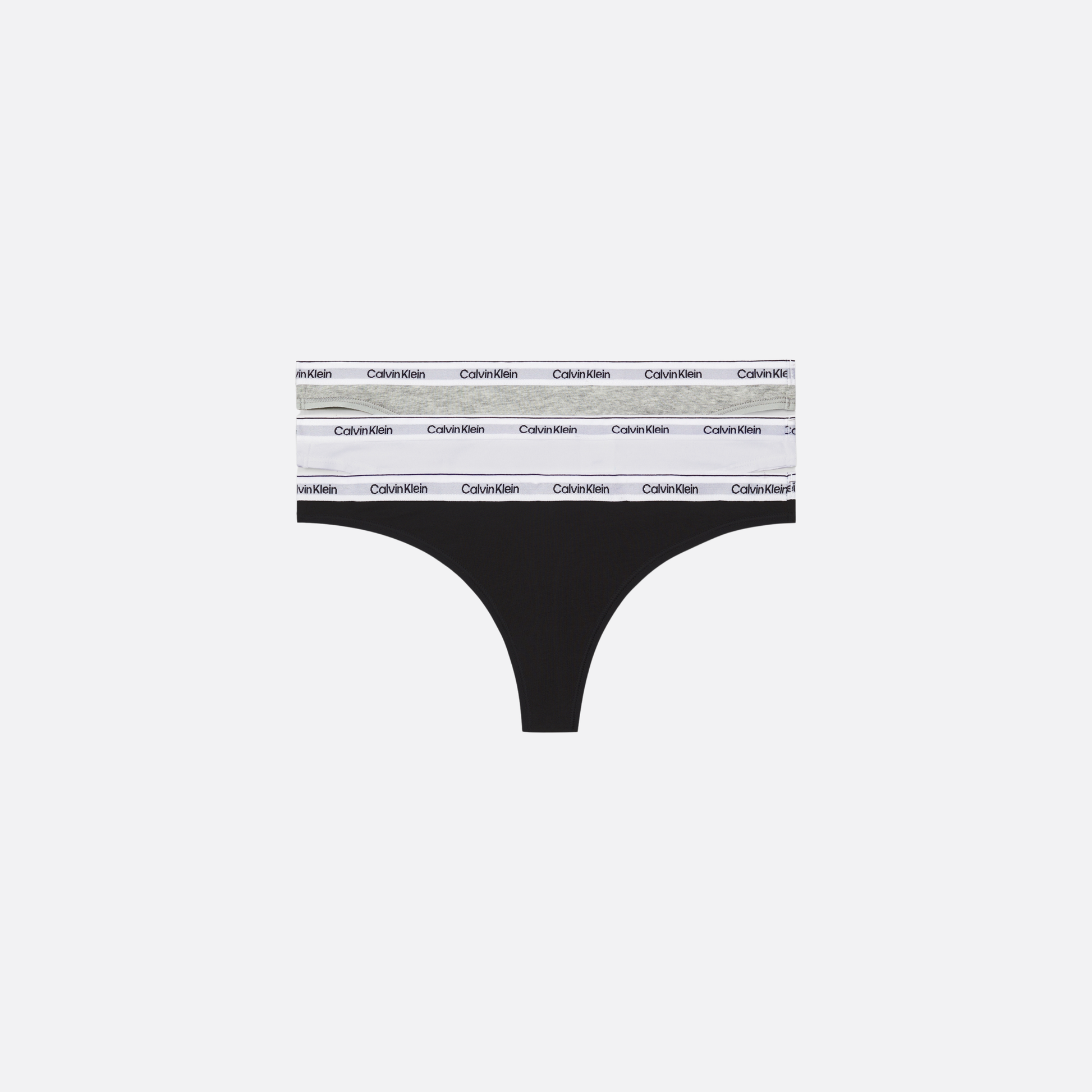 Pack of 3 thongs in stretch cotton blend with Calvin Klein logo elastic waistband.