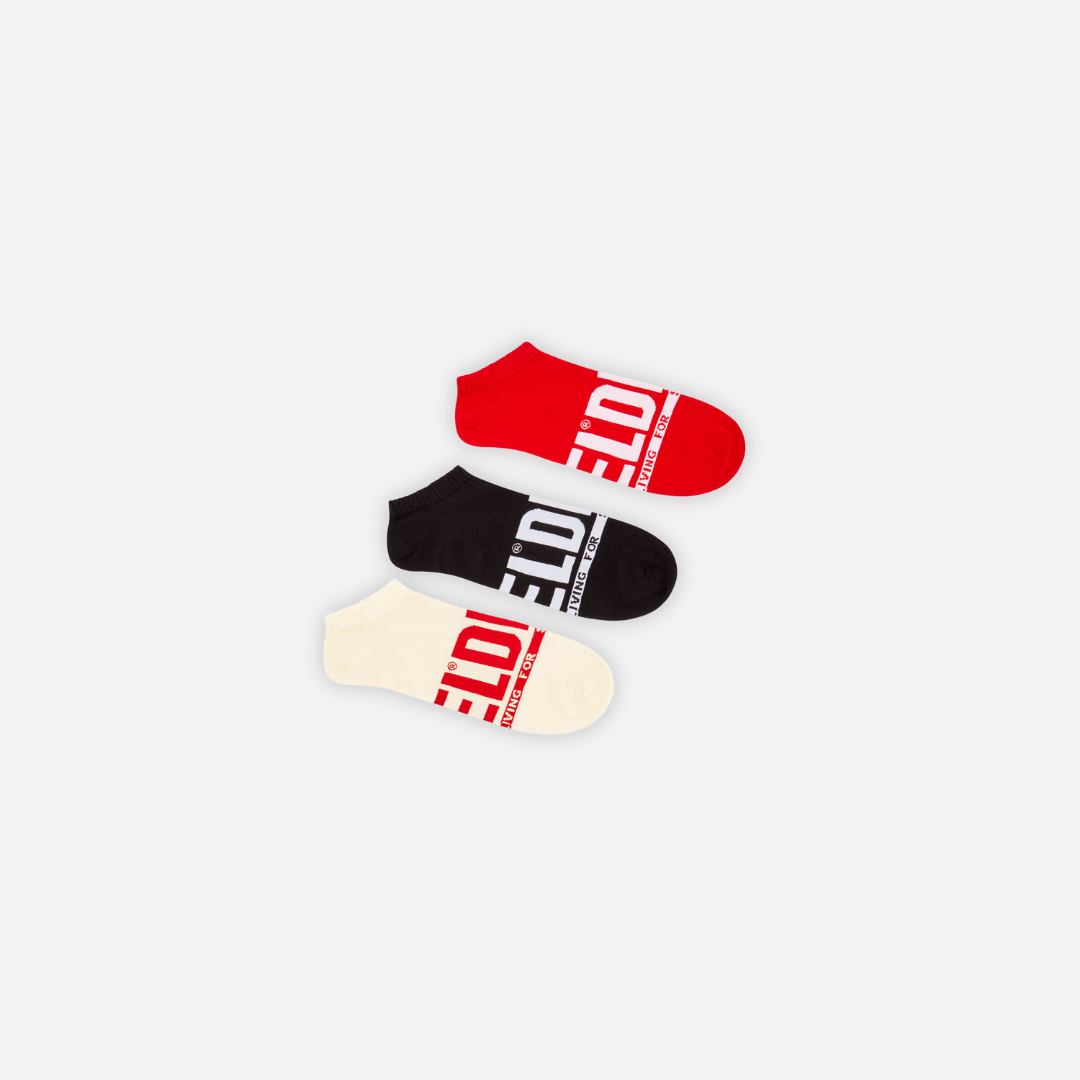 These men's socks boast an oversized Diesel For Successful Living logo that wraps around the foot. Jacquard-knitted from a stretch cotton blend, they're styled with a low-cut fit and come in a pack of three.