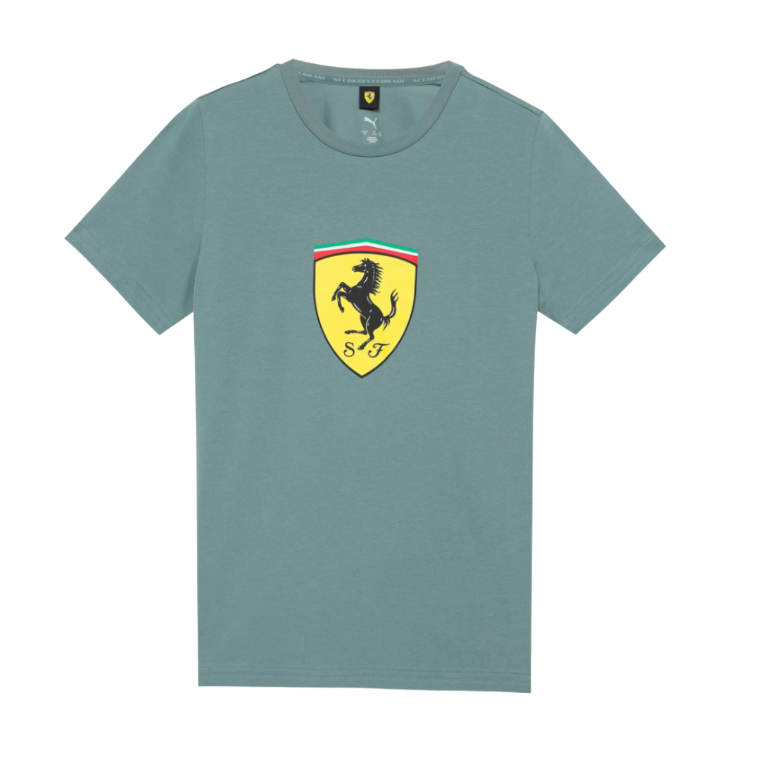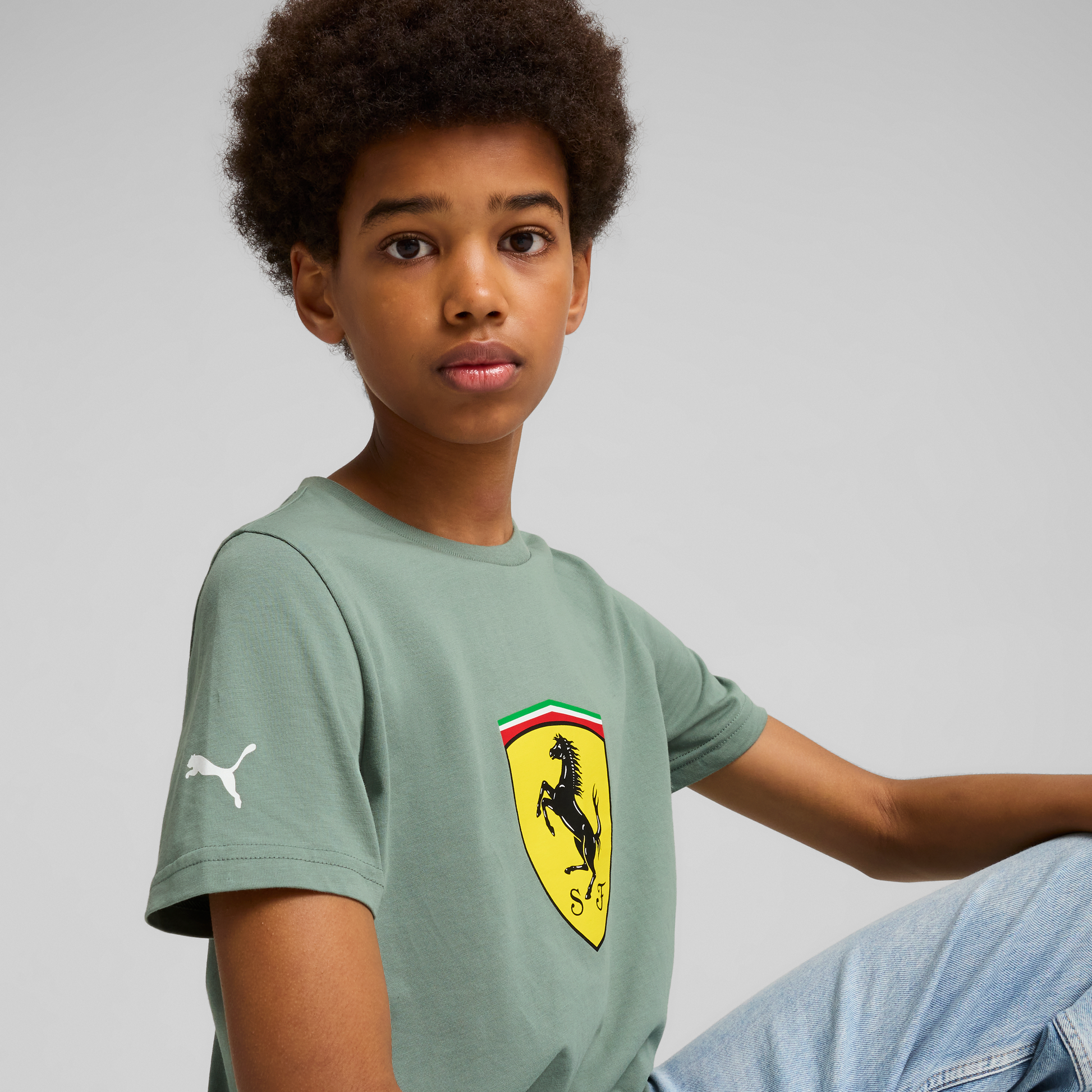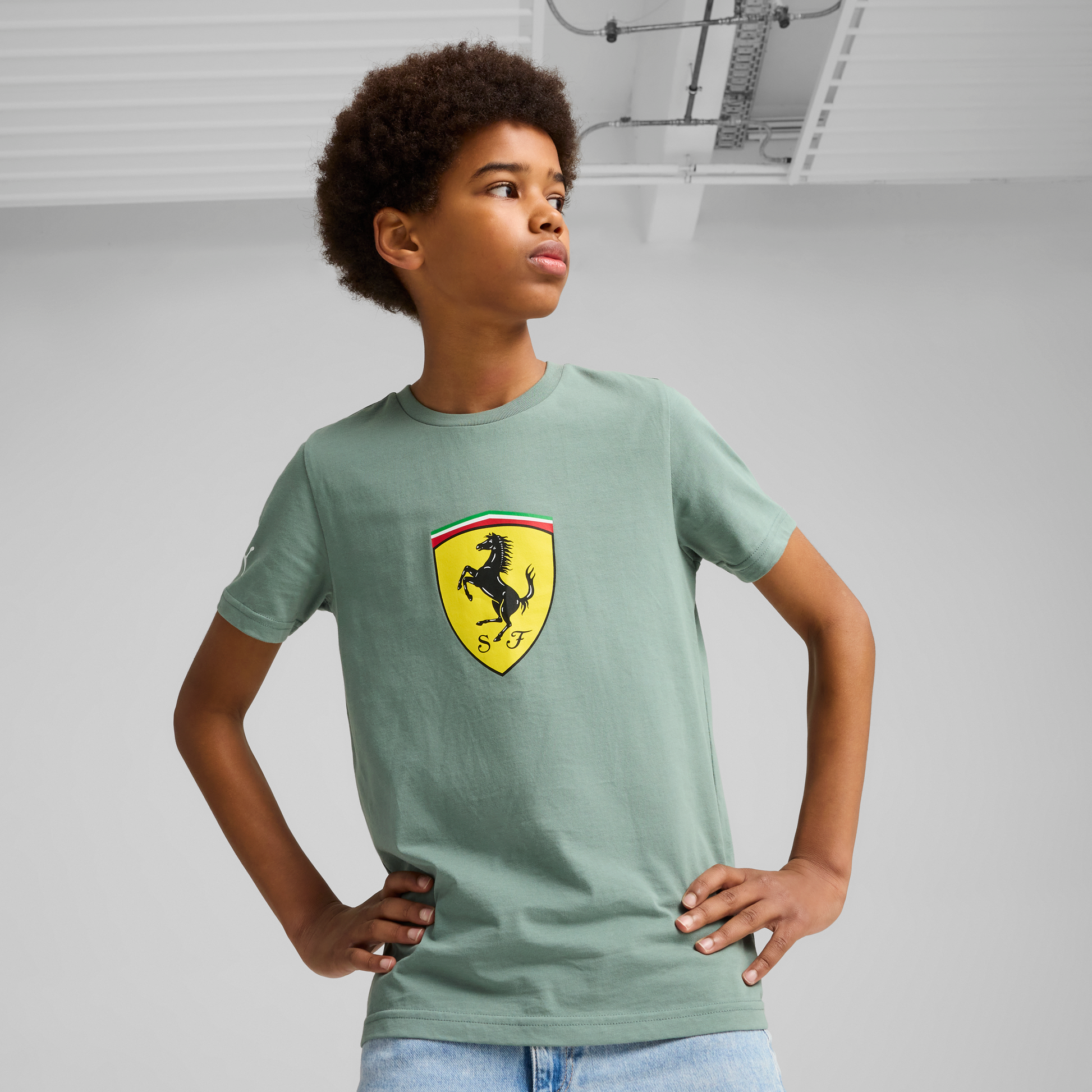 Ignite your passion with this tee featuring the Scuderia Ferrari Big Shield print on the chest and PUMA Cat logo on the back. With a regular fit, it's perfect for young fans who live for speed and style.