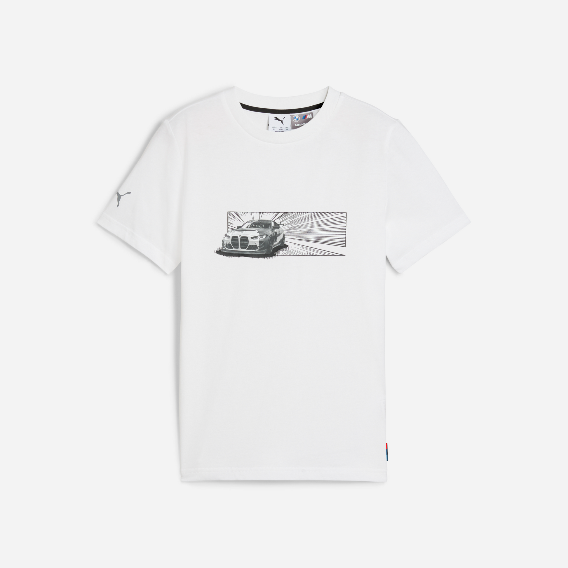 Unleash your kid's inner racer with this tee, featuring a V8-inspired car graphic on the chest. Complete with BMW M Motorsport and PUMA Cat logo prints on the sleeves, it's perfect for young speed enthusiasts and everyday adventures.