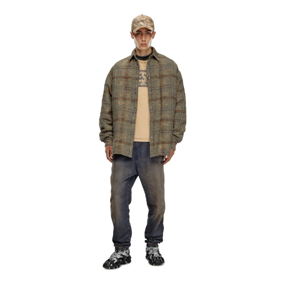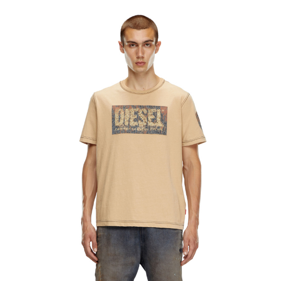 This men’s cotton T-shirt is cut for a regular fit and decorated with raw-edged printed jersey patches featuring an acid rain effect. Contrast double stitching highlights the seams.
