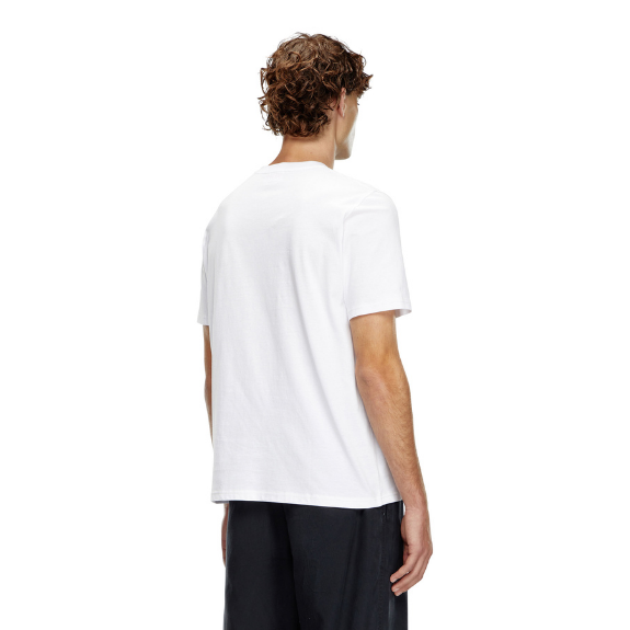 Men’s regular-fit T-shirt made from organic cotton jersey. The iconic Diesel Denim Division logo printed on the front is slightly textured and smudged, as if it has been viewed through splashes of water.
