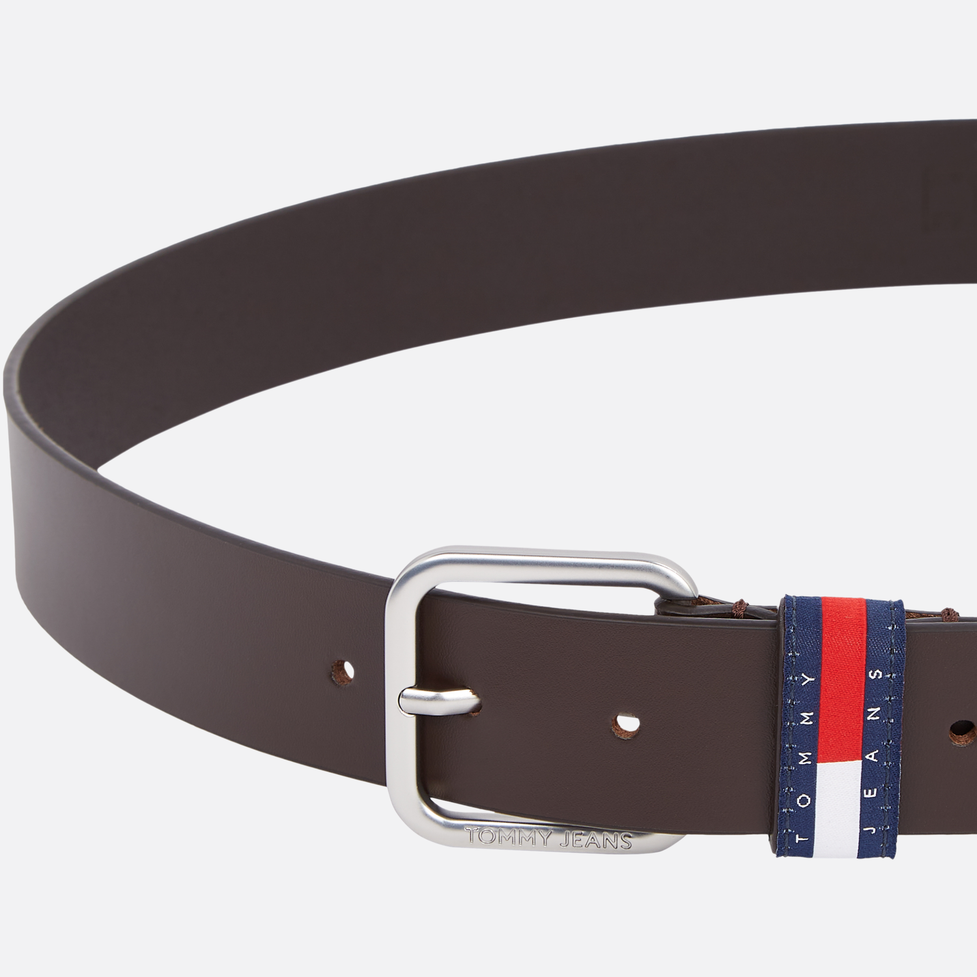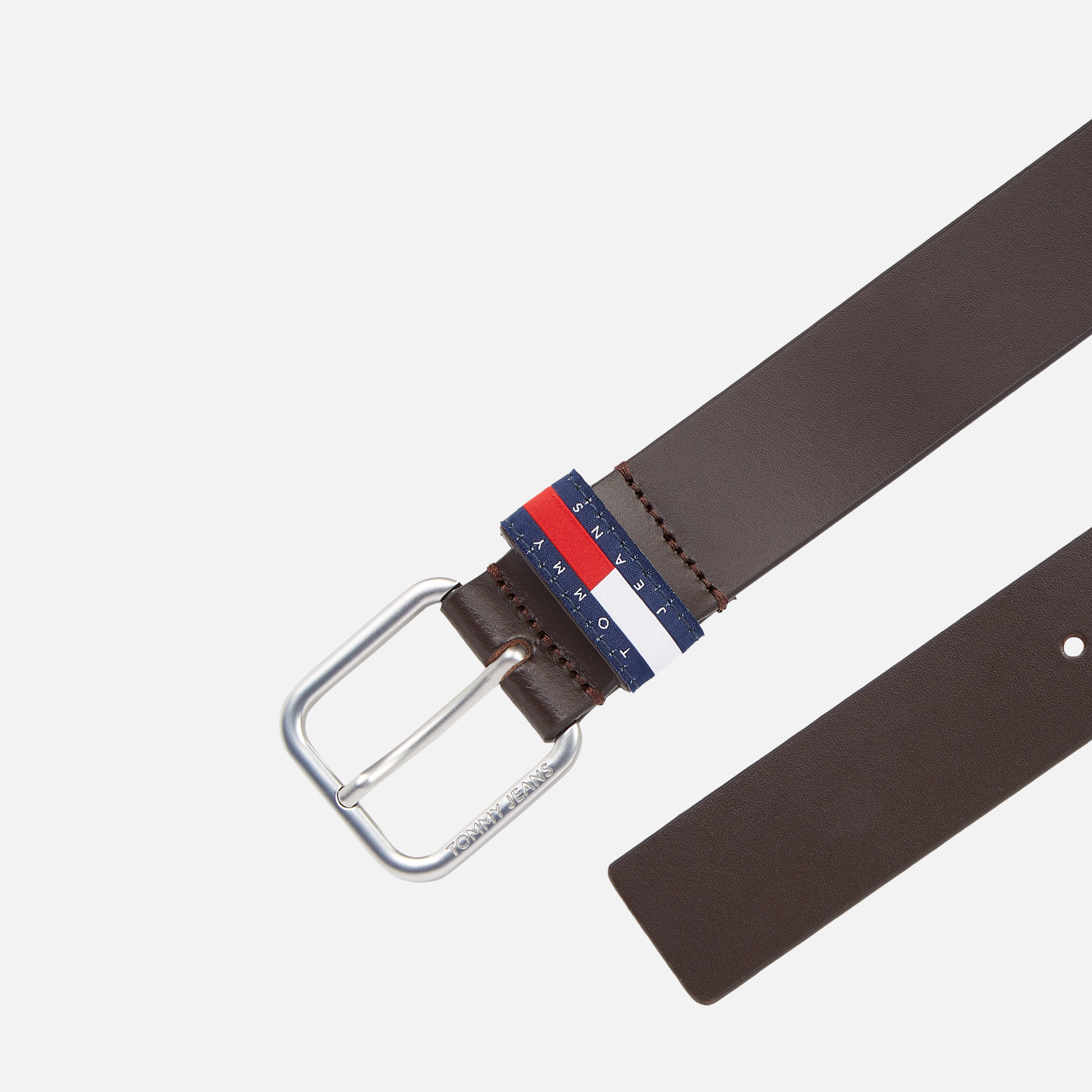 Smooth leather belt with a refined finish and branded belt loop.