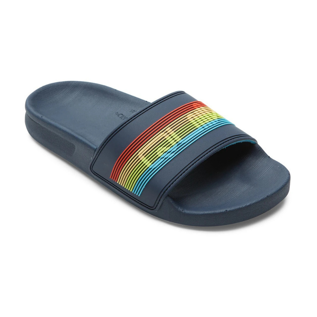 The Rivi Wordmark Slide Youth Sandals are designed for maximum comfort, featuring an ultra-soft Hydrobound™ footbed with anatomically correct contours. The slip-resistant branded outsole ensures stability, while the waterproof synthetic upper makes them perfect for poolside or casual wear.