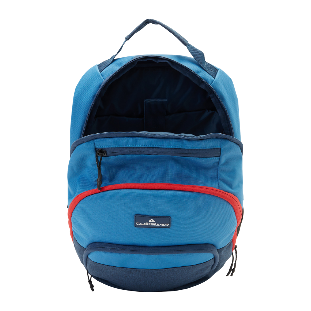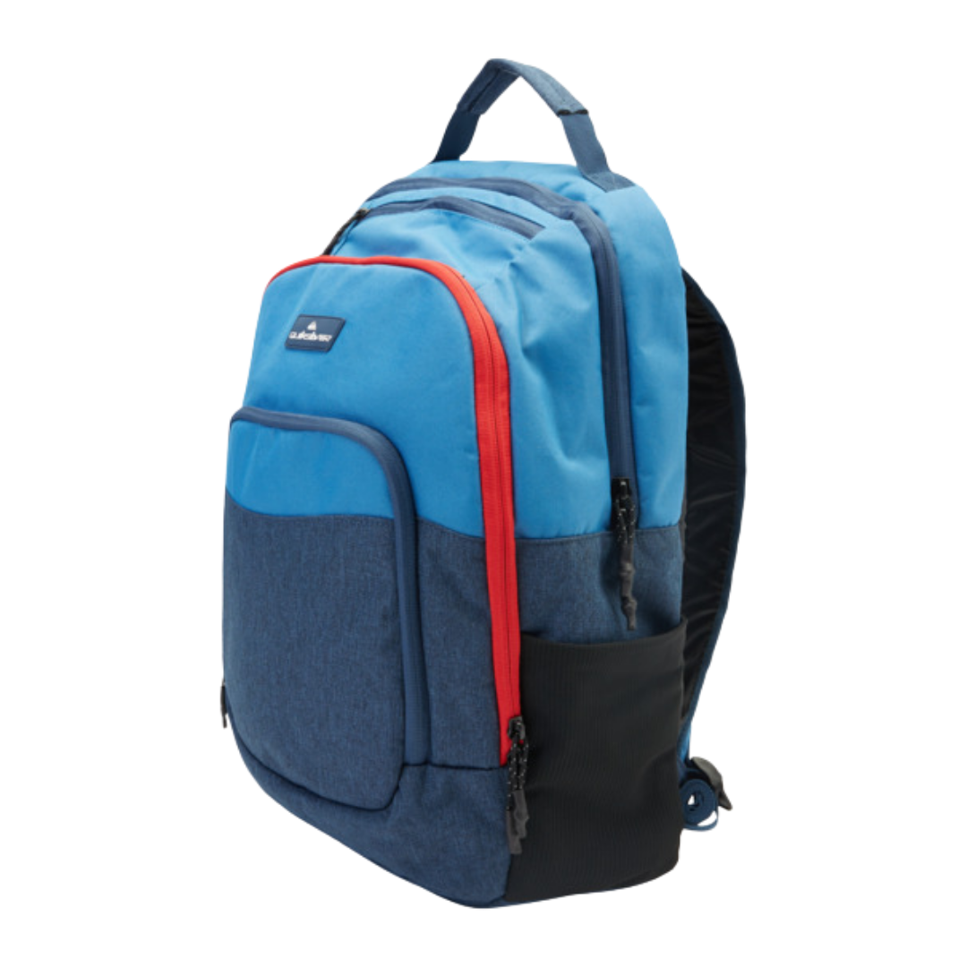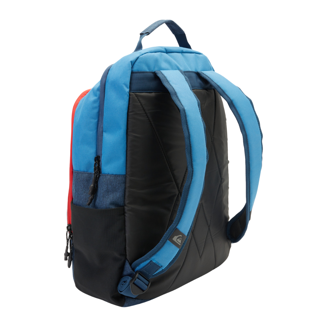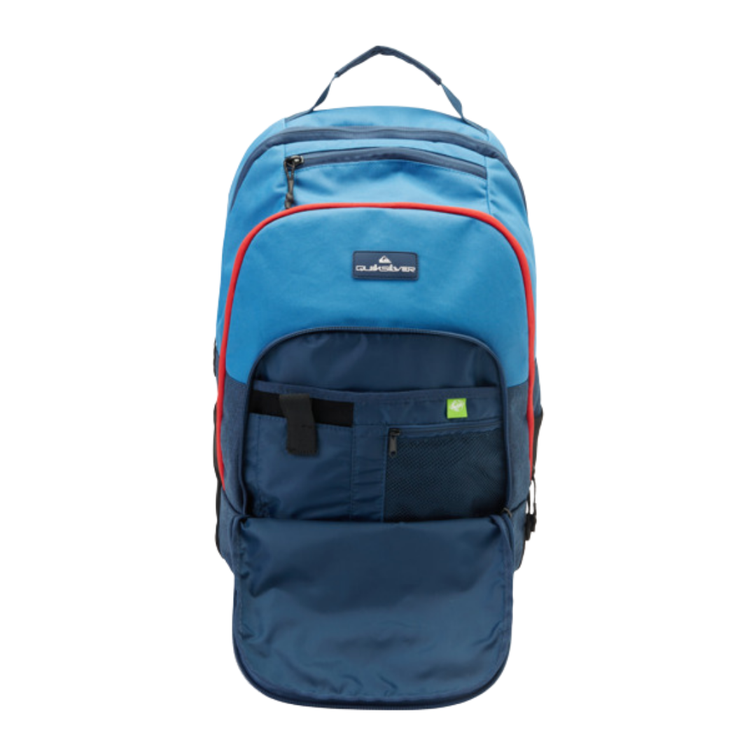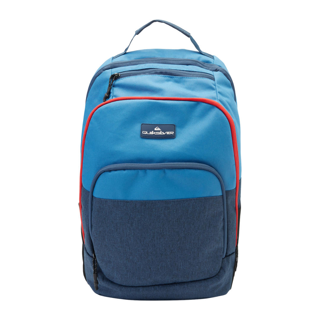 The 1969 Special 28L Large Backpack in Blue is crafted from durable recycled polyester fabric. It features two main compartments, an internal accessory organizer, and a 28L capacity, making it ideal for daily use. The reflective tape adds visibility for outdoor activities.