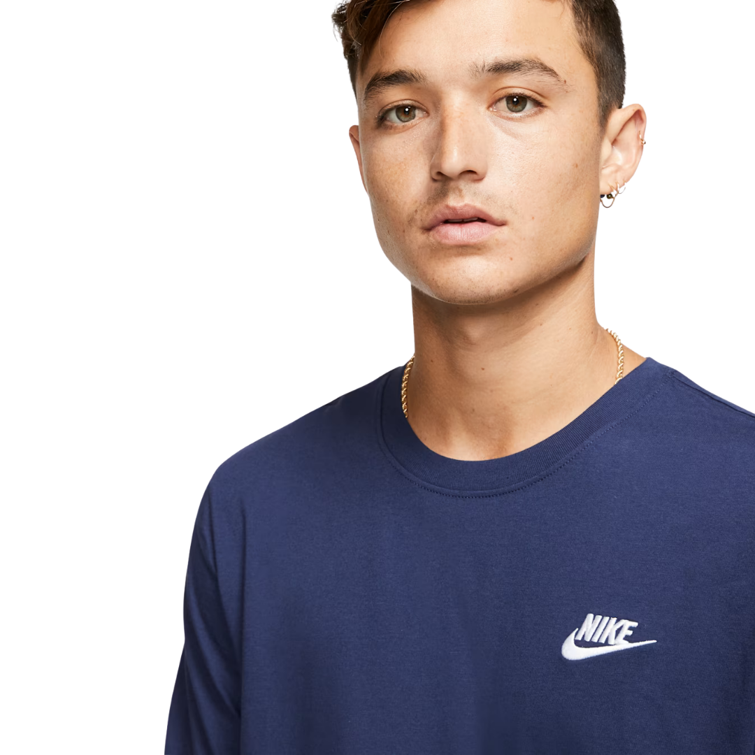 The Nike Sportswear Club T-Shirt is made with our everyday cotton fabric and a classic fit, for a familiar feel right out of the bag. An embroidered Futura logo on the chest provides a signature Nike look.