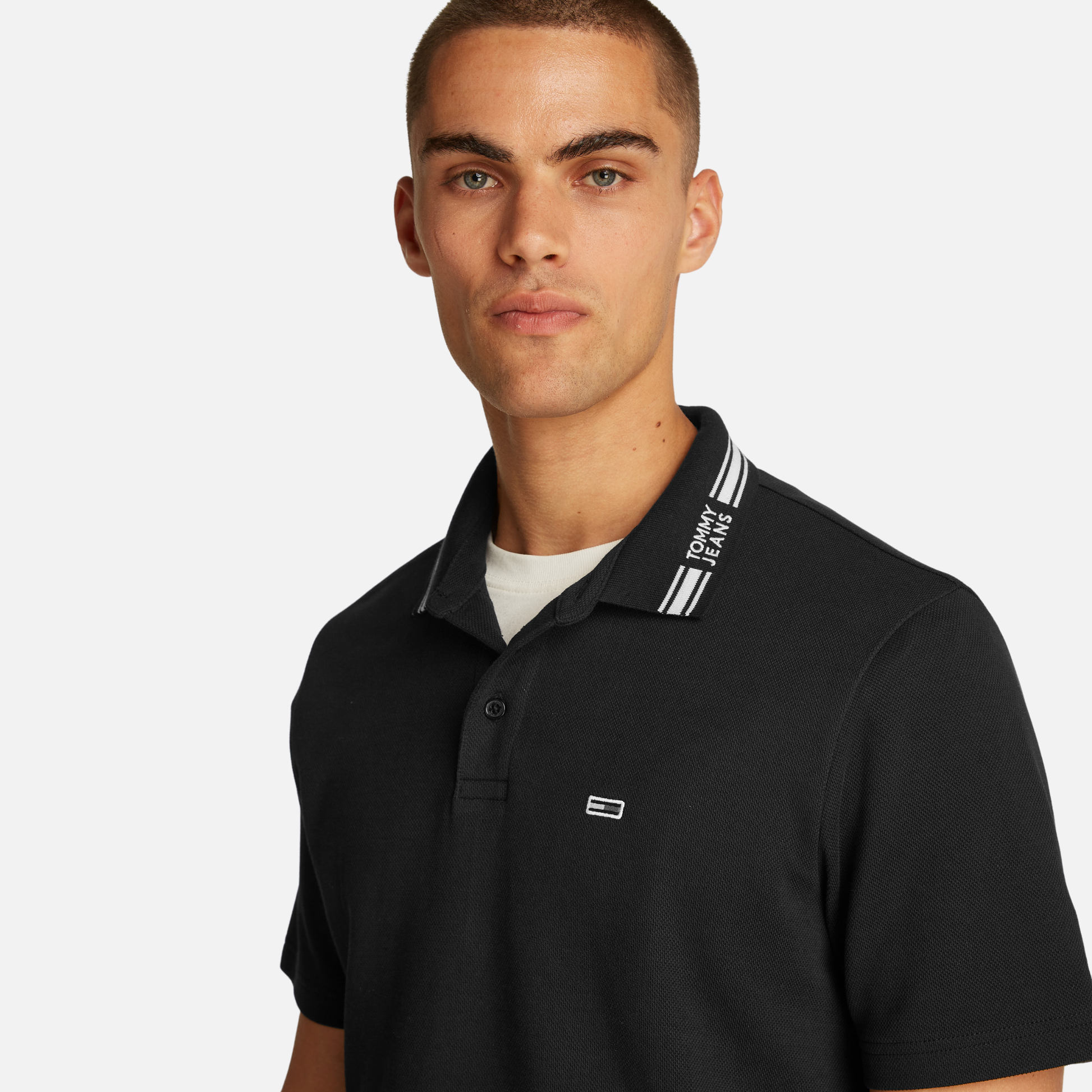 - Tommy Jeans logo on the collar