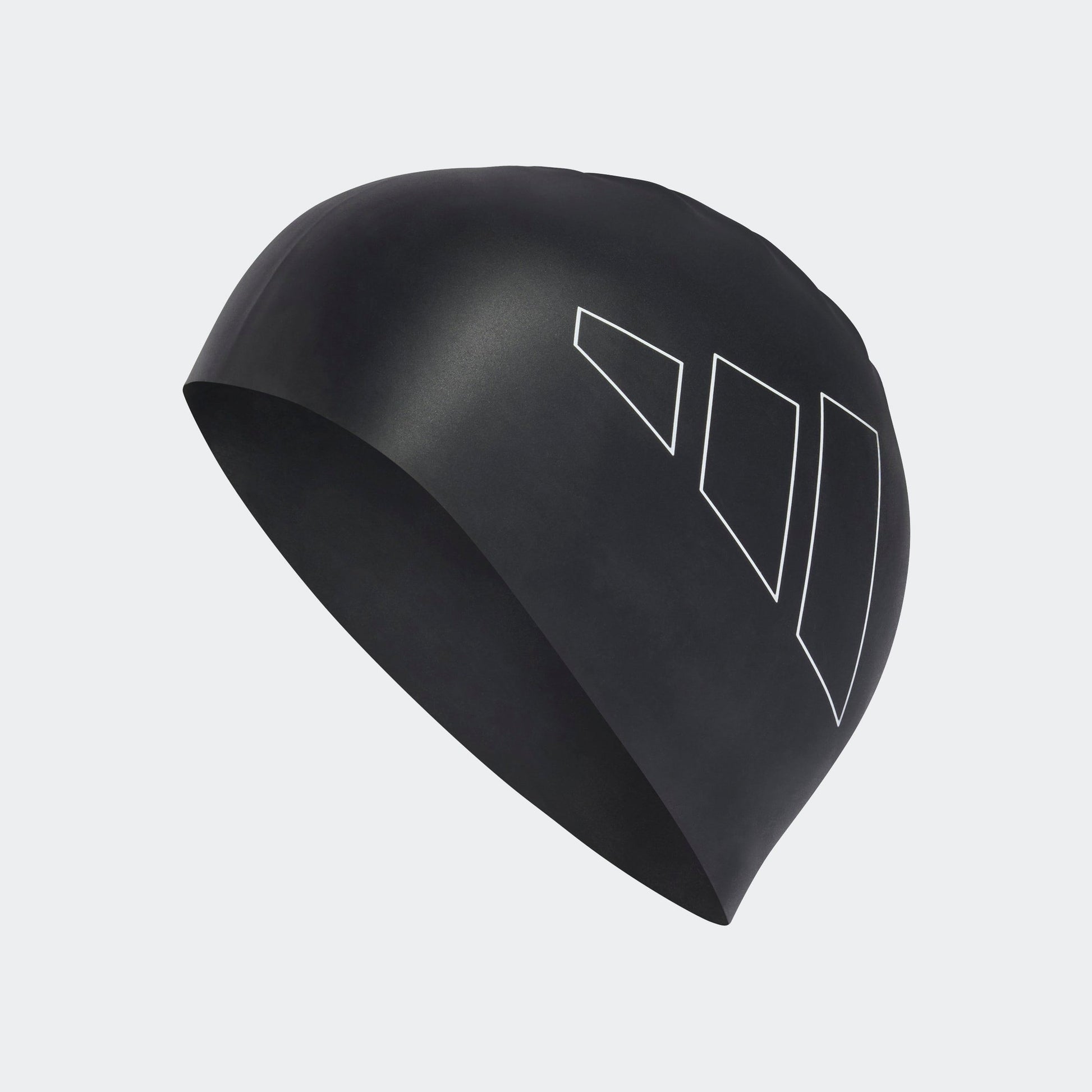 Tear-resistant silicone swim cap with 3-Stripes logo, ensuring a secure fit during training.