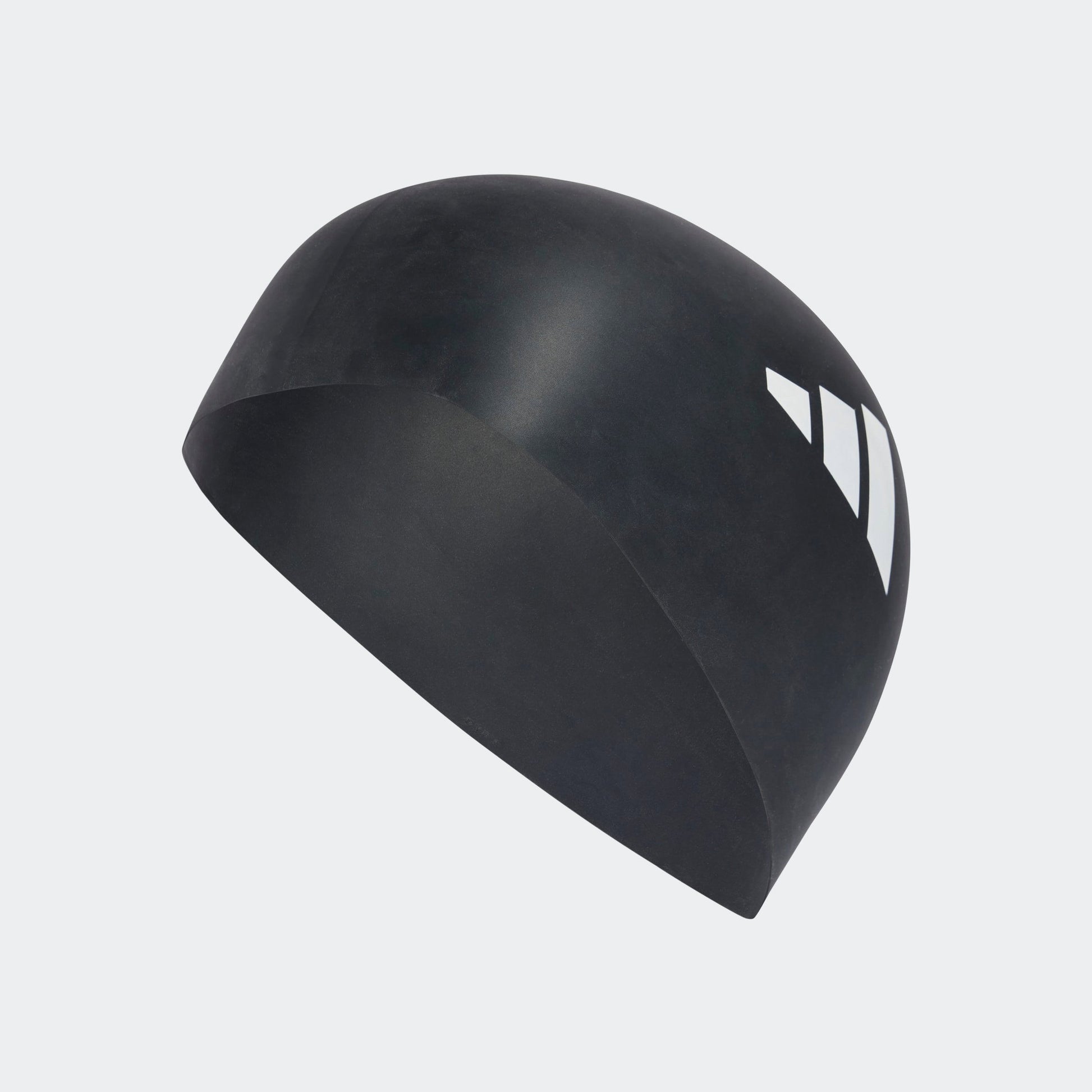 Tear-resistant silicone swim cap with 3-Stripes design for secure fit during laps.