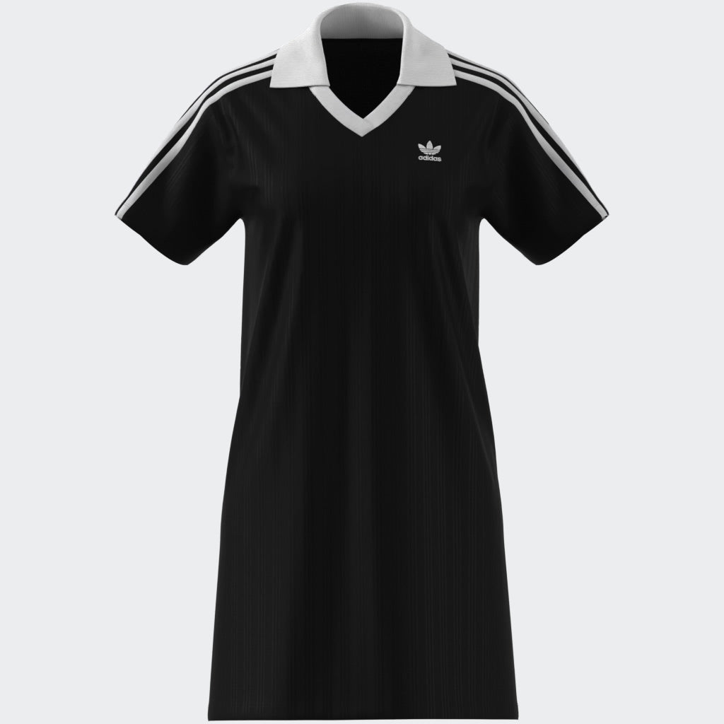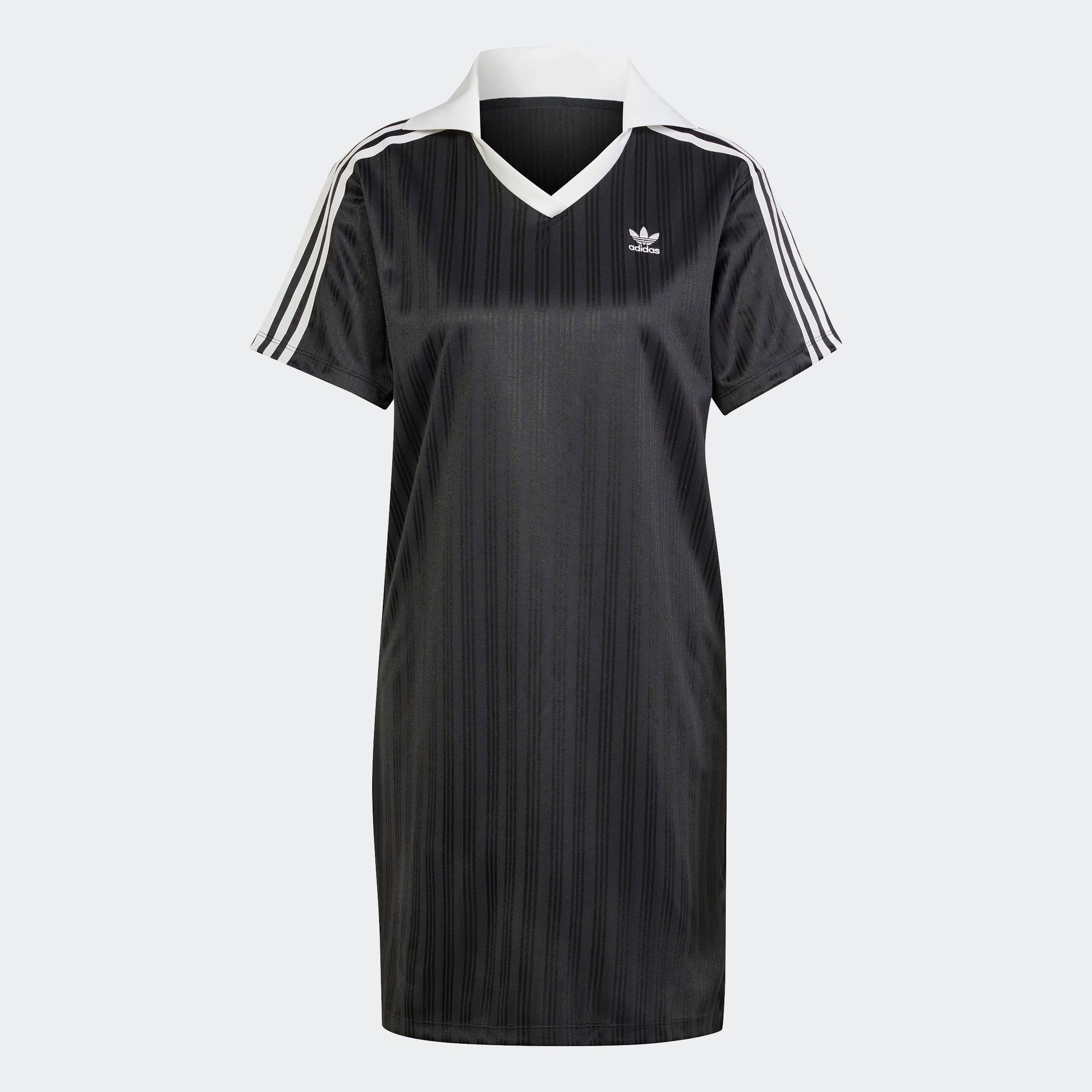 Sporty jacquard dress with a V-neck and polo collar, inspired by early 2000s football shirts.