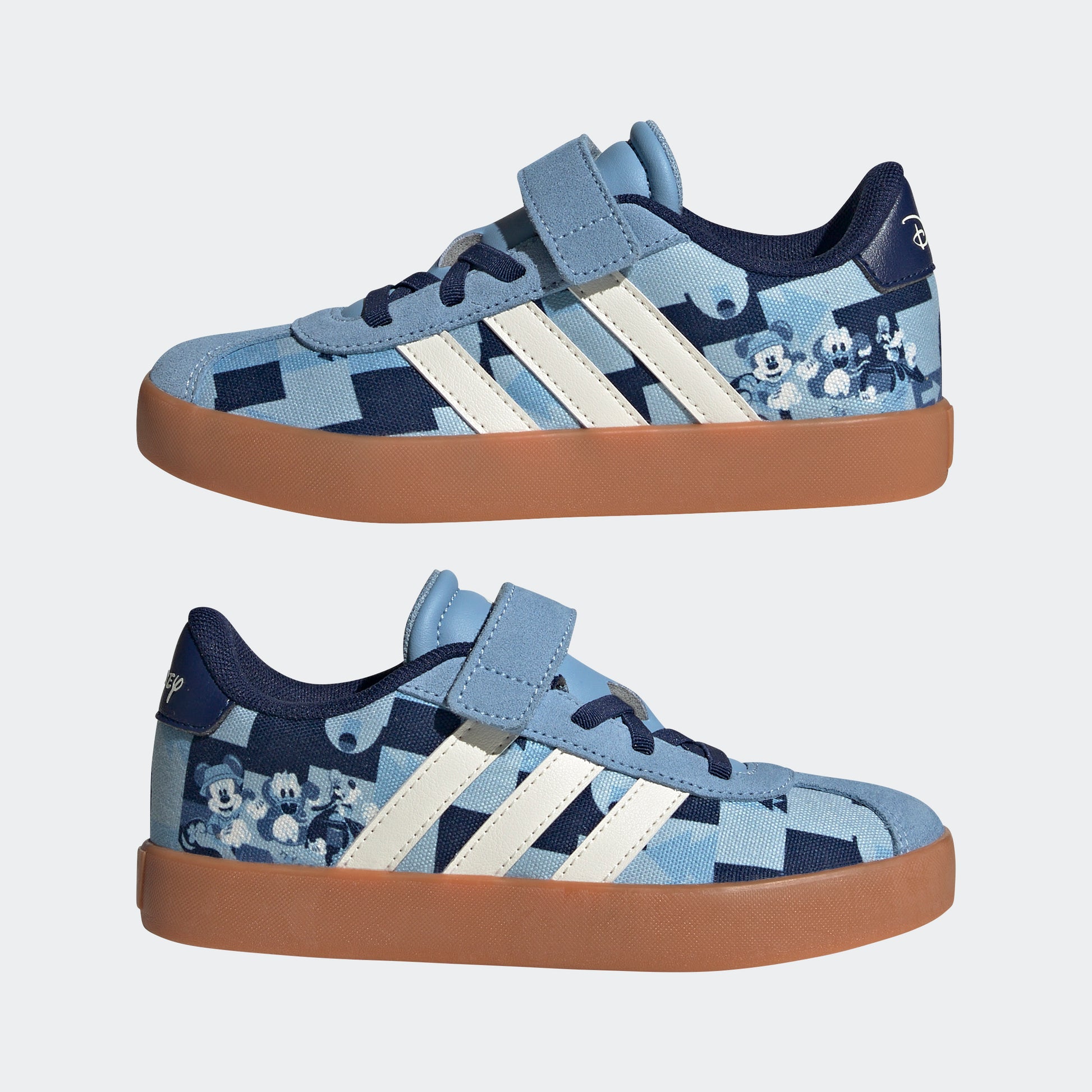 Introducing the Adidas Disney Mickey VL Court Shoes for children, a unisex blend of style and comfort. Crafted for street play and skateboarding, these shoes feature a canvas upper with real suede overlays and non-marking rubber cupsole for durability. The elastic lace with suede top strap closure ensures an easy fit while the Disney graphic details add a playful touch.