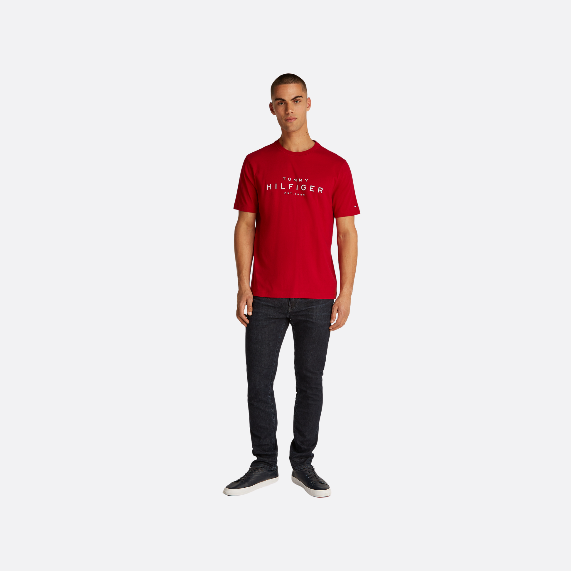 Crew neck T-shirt with logo, made of pure cotton, offering a classic fit and featuring the Tommy Hilfiger logo on the chest.