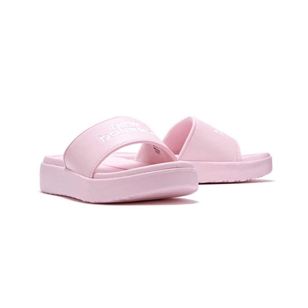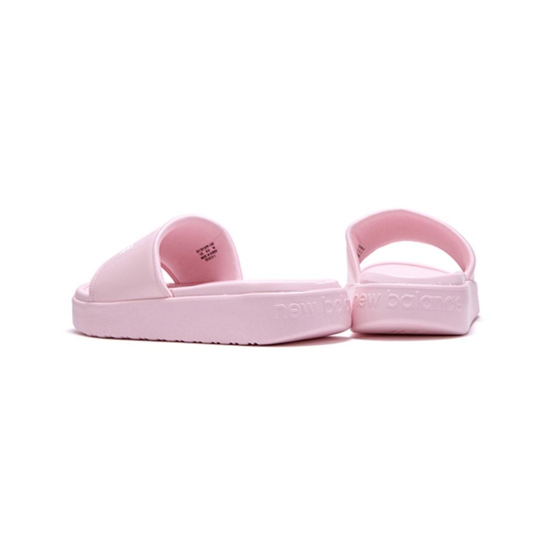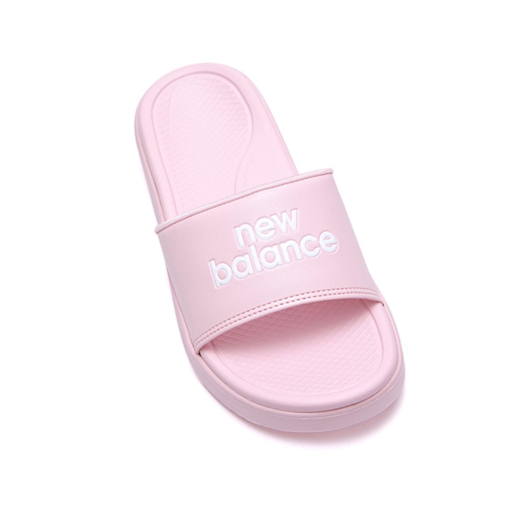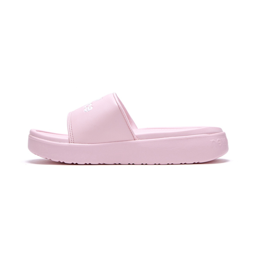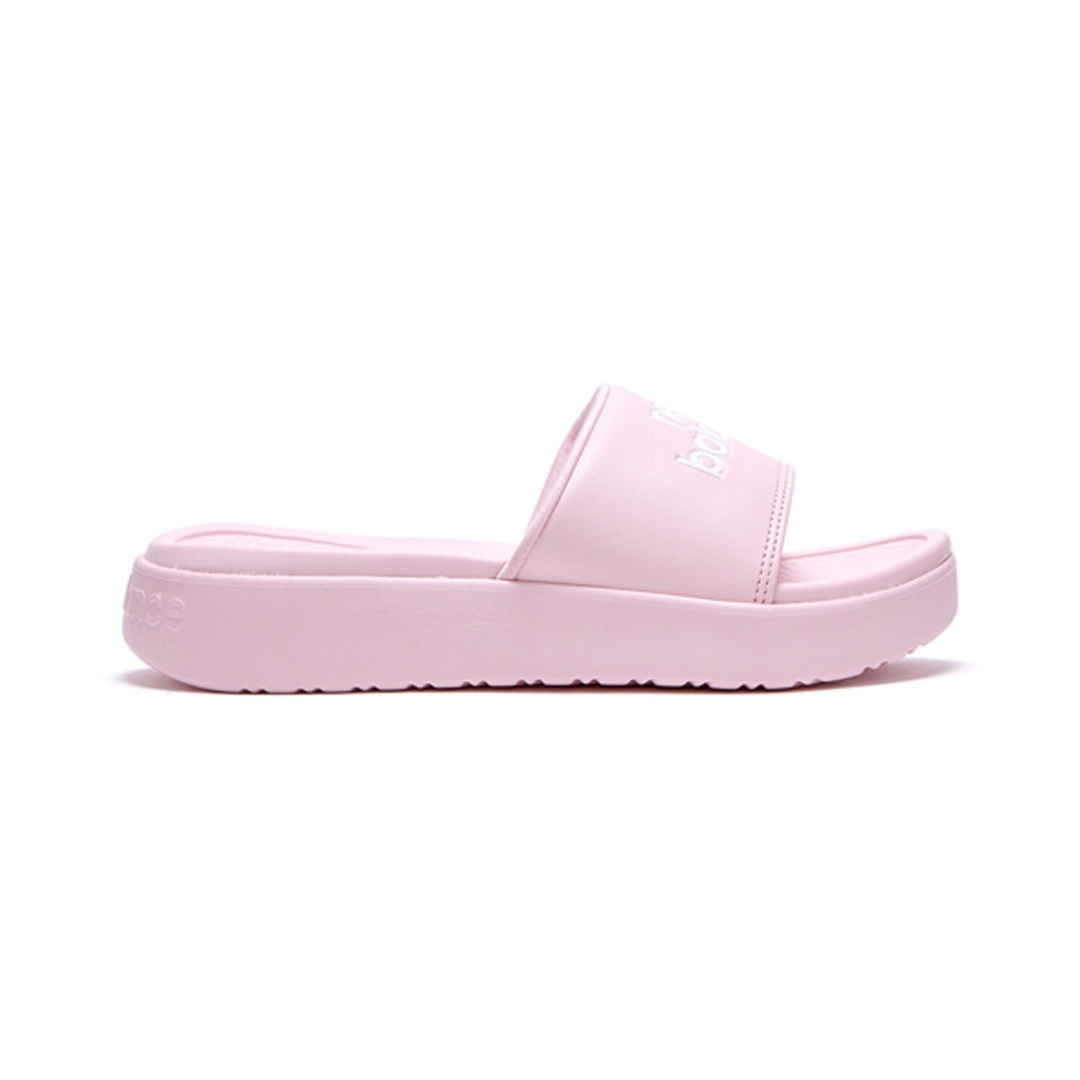 Stylish pink slides with molded footbed and wide strap featuring logo detail.