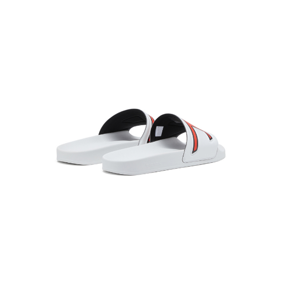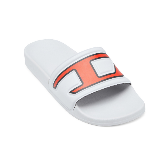 These men's black slides are styled with moulded footbeds and gripped logo soles. Their wide upper band is branded with an embedded D logo.