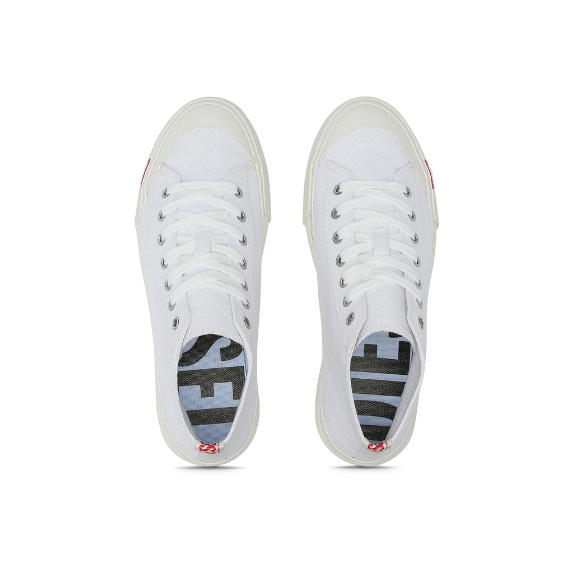 In a high-top silhouette, these men’s canvas sneakers have a new, improved fit, slimmer toe boxes and higher rubber foxing along the sidewalls. The subtle red logo details match the colour of the outsole.