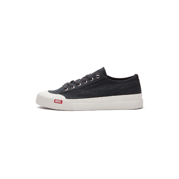 This women's trainers are made from durable cotton canvas with high rubber foxing and thick toe caps. They fasten with laces and feature small red logo accents that match the colour of the outsole.