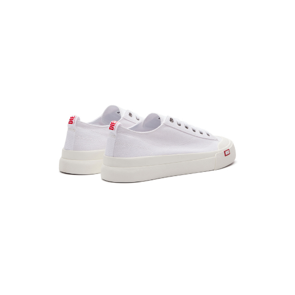 This women's trainers are made from durable cotton canvas with high rubber foxing and thick toe caps. They fasten with laces and feature small red logo accents that match the colour of the outsole.