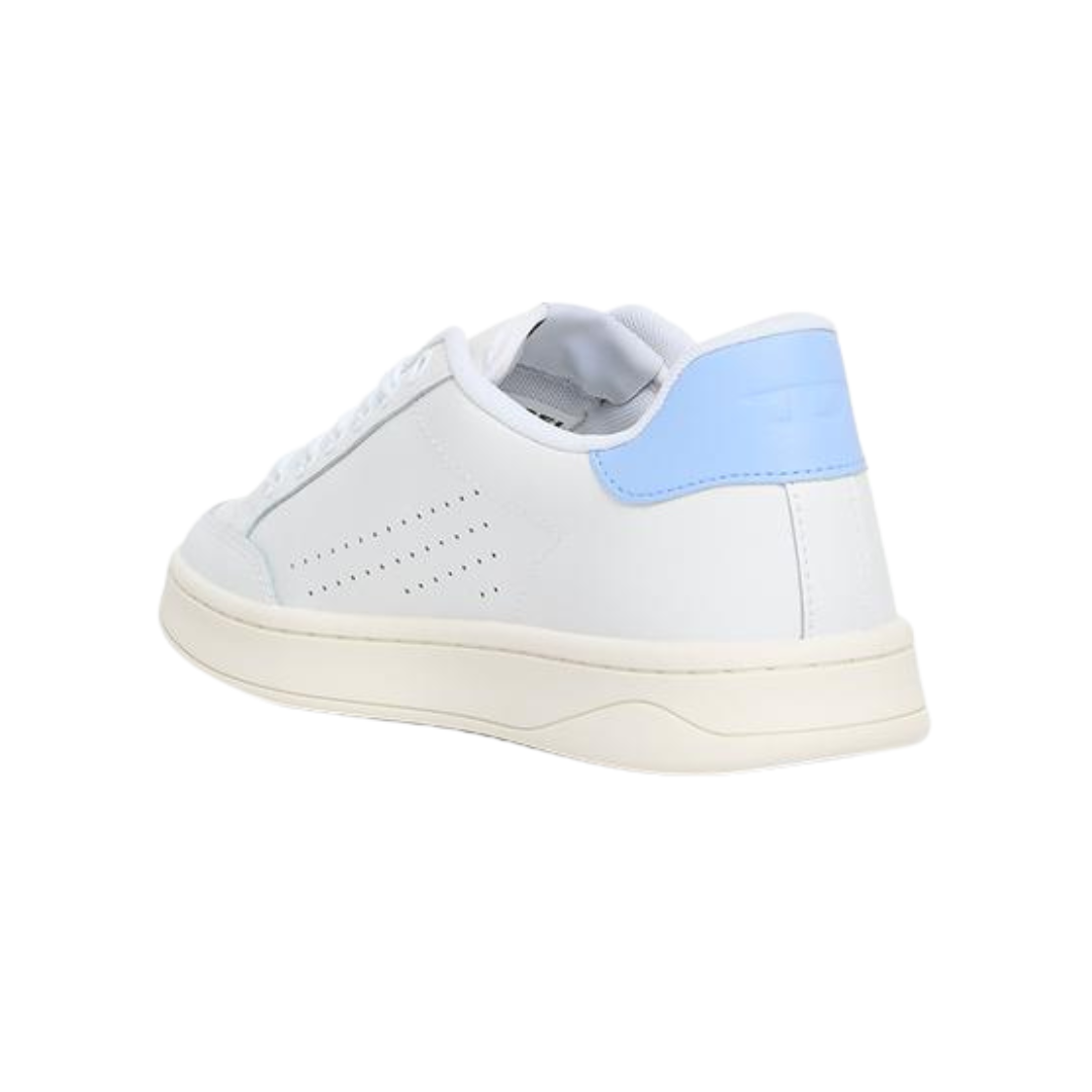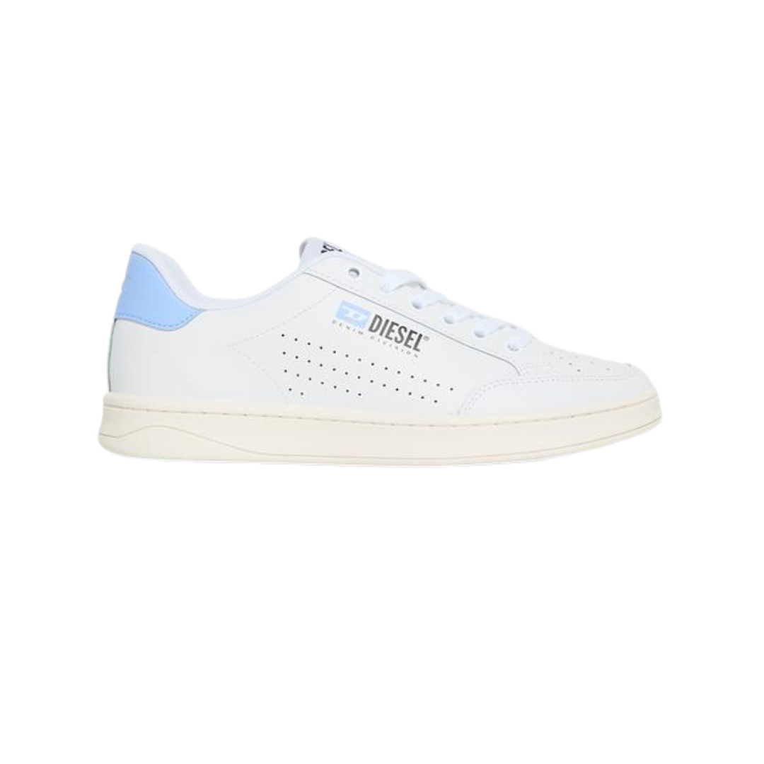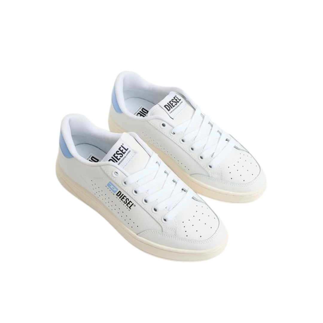 Inspired by retro court styles, these women's sneakers are crafted from active leather with a soft tumbled finish. A contrast heel patch and matching Diesel logo on the side add color, while perforations on the toe and side enhance breathability.
